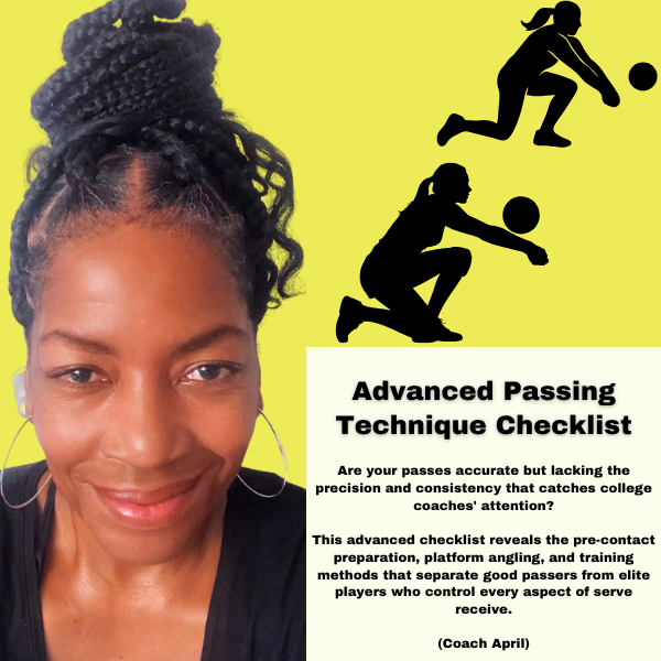 Stop settling for basic passing when you could be mastering the advanced techniques that create elite-level ball control. This comprehensive advanced system reveals the pre-contact preparation, platform angling, and training methods that transform good passers into recruitment-worthy players. **What You'll Get:** • Pre-contact preparation - Master server reading and positioning techniques for maximum reaction time • Platform angle and targeting - Perfect inside shoulder angling and net-parallel positioning for precision • Advanced ball control - Learn leg-driven power transfer and platform freezing for consistent delivery • Consistency training methods - Build muscle memory with 250-500 daily wall passing repetitions • Coach April's elite techniques - Advanced methods that create college-recruitment-worthy skills • **1-page PDF checklist- Convenient format for advanced training and skill mastery