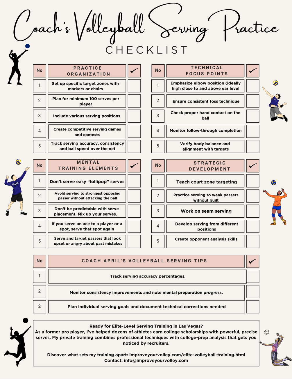 Perfect for:** • First-generation volleyball families who want to help effectively • Coaches developing systematic serving programs • Parents wanting to provide meaningful, informed support • Volleyball families committed to comprehensive player development • Teams seeking strategic serving advantages through coordinated support